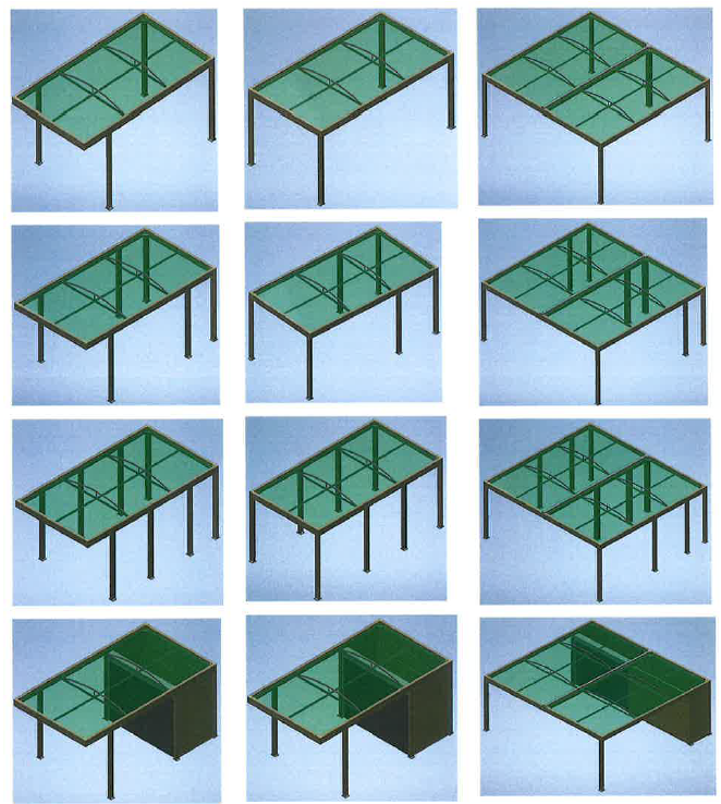 Disponibles en deux ou quatre modules pour abriter un ou plusieurs véhicules, les carports de type marquises sont montés sur des poteaux en aluminium. Les platines de fixation au sol facilitent l’écoulement des eaux de pluie, évitant la stagnation et le risque de rouille. Les poteaux peuvent être fixés aux quatre coins du carport, à moins que vous ne préfériez décaler ceux de l’avant pour profiter d’une avancée.