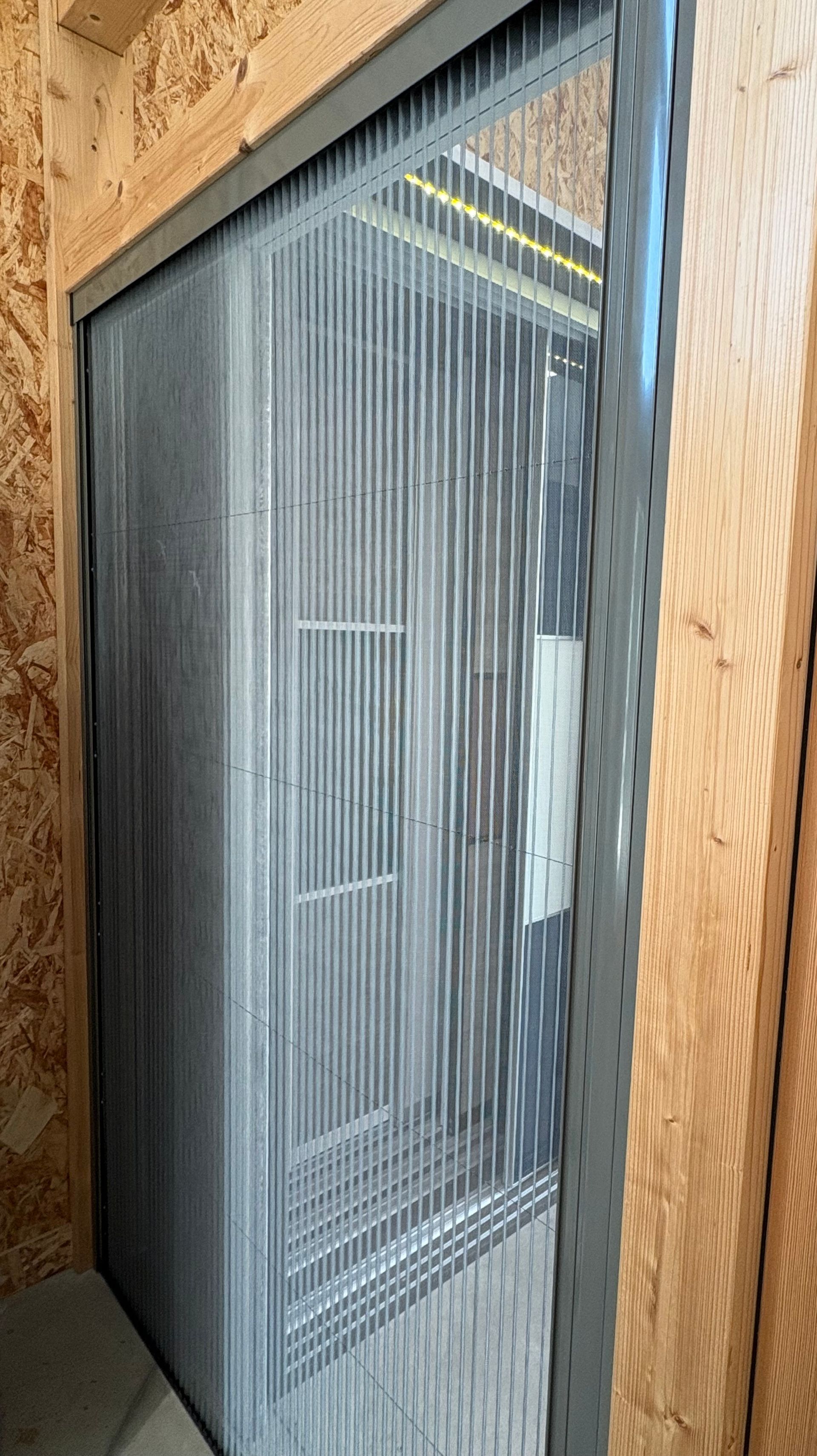 Léger, le tirage latéral se fait d’une seule main et la fermeture est sûre grâce au profil aimanté sur toute la hauteur. La fibre de verre enduite de PVC noir assure une meilleure visibilité. La coulisse au seuil plat est compatible avec les seuils de porte pour personnes à mobilité réduite. Un démontage simple et sans outils pour l’hivernage vous facilite la vie.